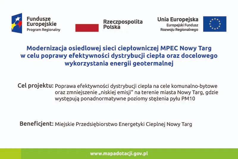 Projekt: Modernizacja osiedlowej sieci ciepłowniczej MPEC Nowy Targ w celu poprawy efektywności dystrybucji ciepła oraz docelowego wykorzystania energii geotermalnej