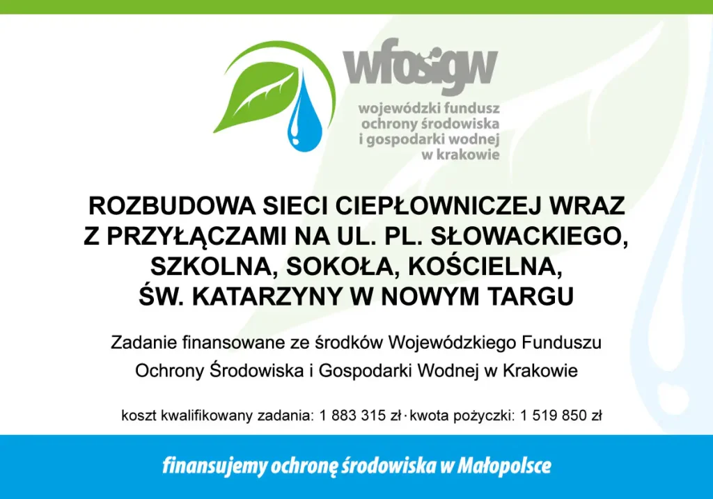 Rozbudowa sieci ciepłowniczej wraz z przyłączami na ul. Pl. Słowackiego, Szkolna, Sokoła, Kościelna, św. Katarzyny w Nowym Targu
